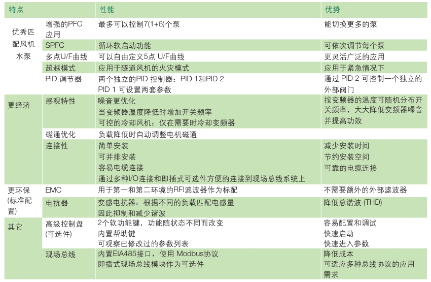 ACS510还针对风机、水泵应用做了特别的优化,典型的应用包括恒压供水,冷却风机,地铁和隧道通风机等等。
