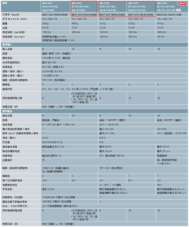 SM1223 数字量输入输出模块 16输入24V DC/ 16输出24V DC |