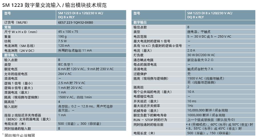 SM1223 数字量输入输出模块 8输入120/230V AC/ 8输出继电器 |