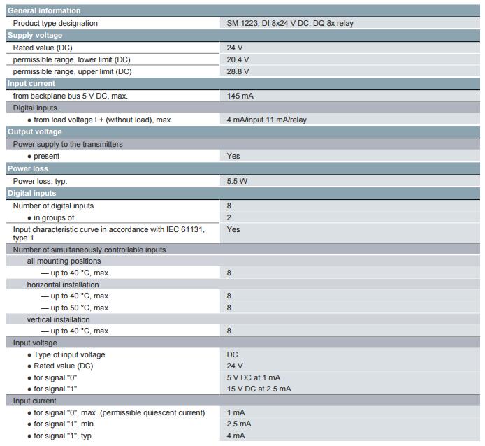描述:SM1223 数字量输入输出模块 8输入24V DC/ 8输出继电器