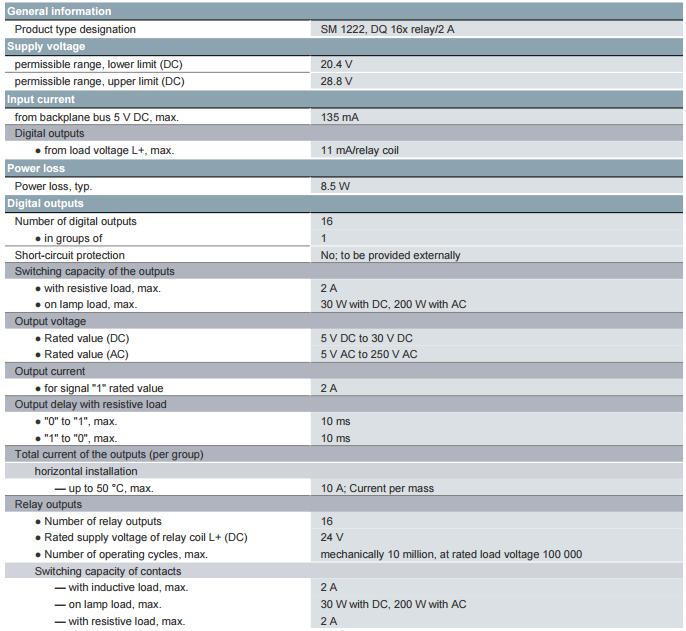 SIMATIC S7-1200, Digital I/O SM 1223, 16 DI/16 DO, 16 DI 24 V DC, Sink/Source, 16 DO, relay 2 A