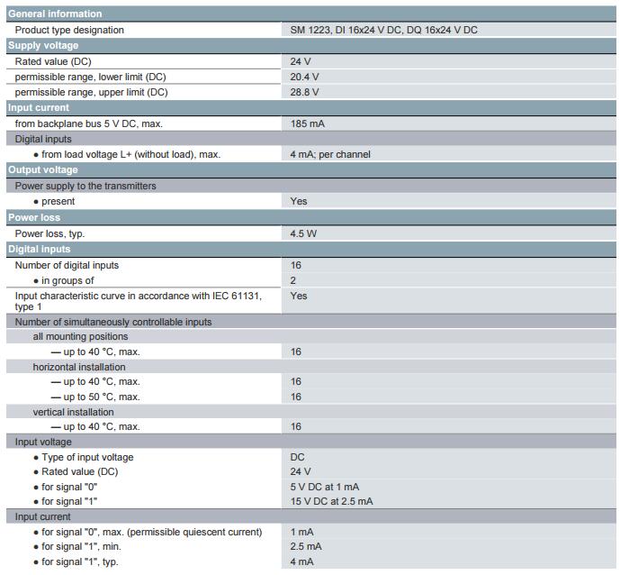 描述:SM1223 数字量输入输出模块 16输入24V DC/ 16输出24V DC