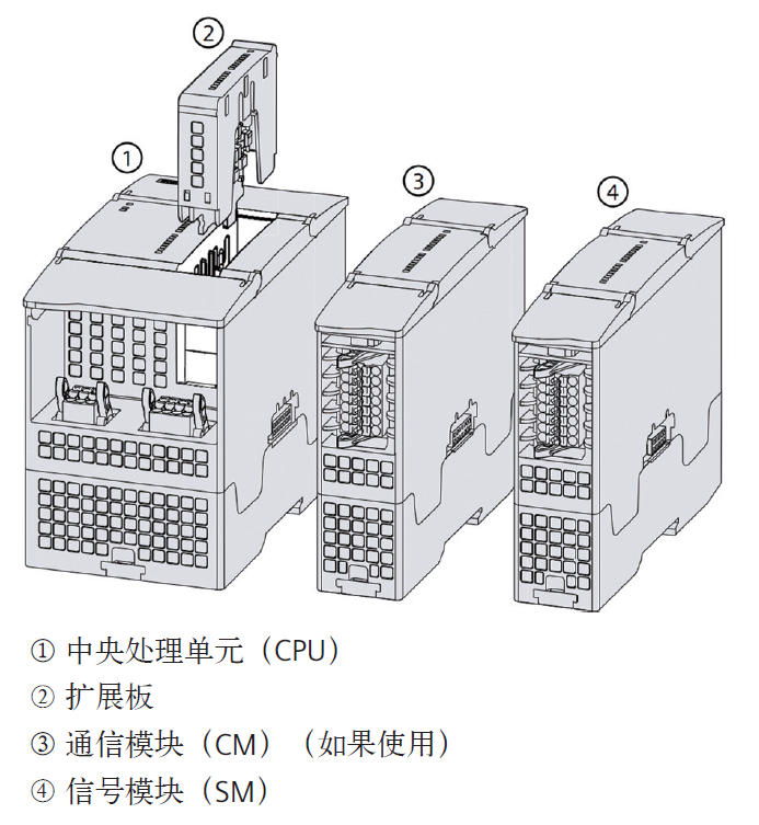 与上一代硬件不同,G的的所有通信模块和信号模块均安装在CPU的右侧,用户可以将通信模块连接到CPU或另一个通信模块。在安装任何信号模块之前,需先连接所有的通信模块,安装时,对齐模块的柱脚与CPU或模块的孔,用力压入,直到柱脚卡入到位即可。